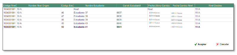 Cambio de Nivel de Estudiantes