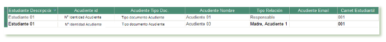 • Nombre y tipo de relación del acudiente asignado al estudiante.