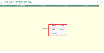 NOTA: Encontramos opciones adicionales que permiten realizar acciones como modificar, eliminar y ordenar por código o nombre, estas opciones se listan con “clic derecho” dentro de cada opción de cartilla.