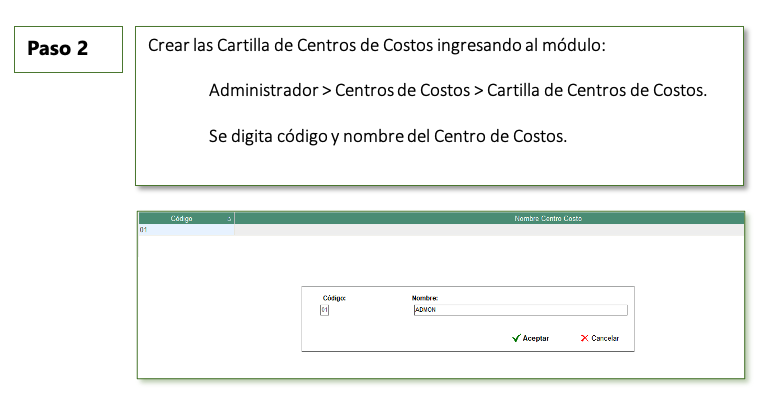 Cartilla de Centros de Costo