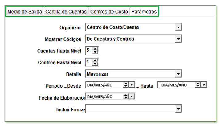 • En los parámetros del informe se puede generar los siguientes filtros: