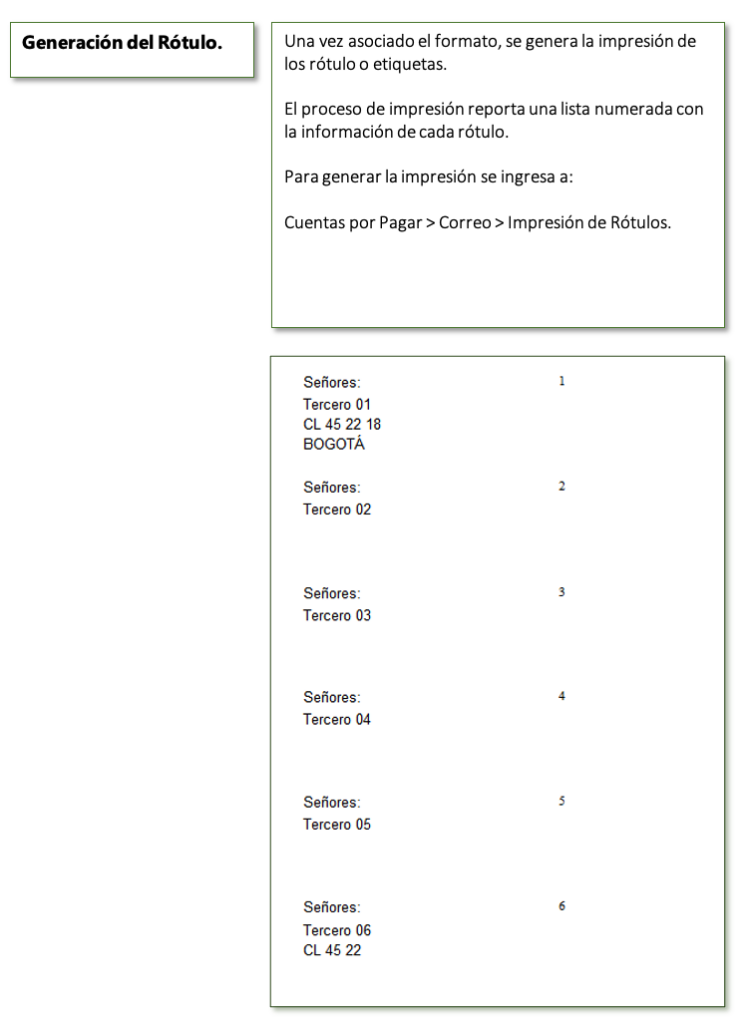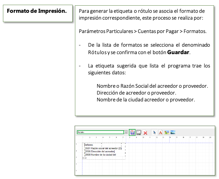 Corresponde a una etiqueta parametrizable para reportar datos informativos del proveedor y acreedor.