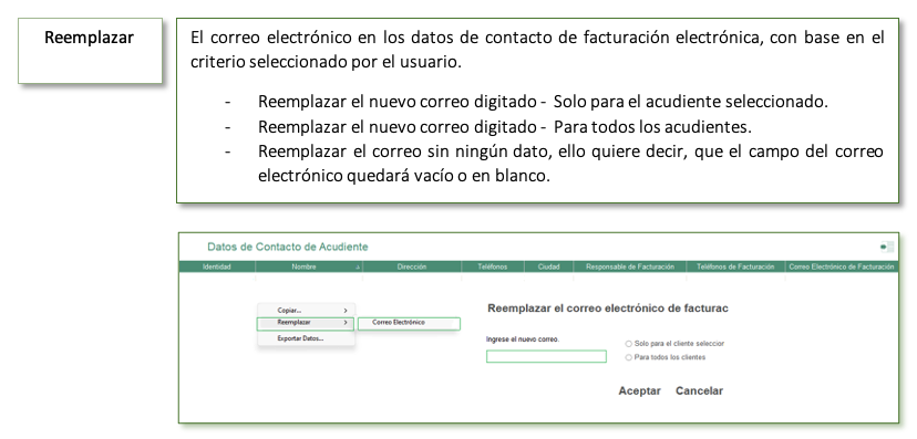 La consulta también integra datos registrados para efectos de facturación electrónica: Nombre del responsable de facturación, teléfono de facturación y correo de facturación, datos que previamente se deben ingresar en la cartilla de acudientes en la pestaña datos de contacto.