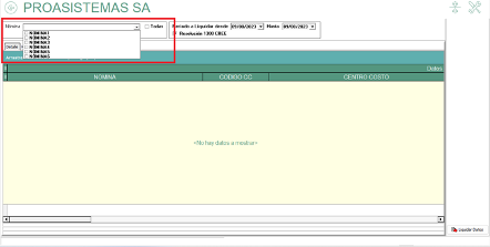 - Definir la nómina o las nóminas marcando cada cuadro, de las cuales se quiere generar la información, si son todas, se debe marcar la opción “todas”.