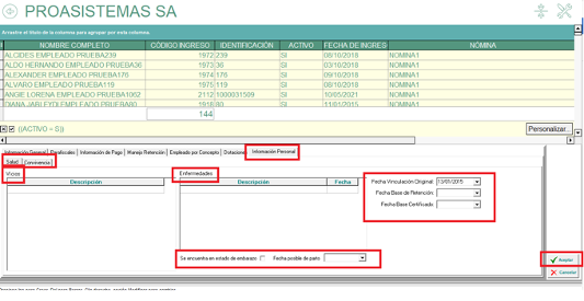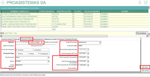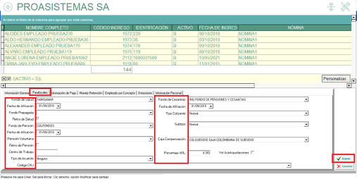 - Parafiscales: Se debe ingresar información para seguridad social como: