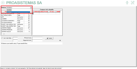 • Definir los títulos que se quieren mostrar, la fuente de la letra, el tamaño de cada columna y tener presente que a ser en PDF hay un límite de conceptos al momento de seleccionarlos.