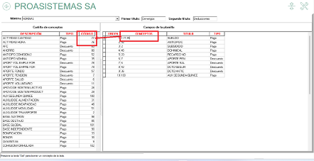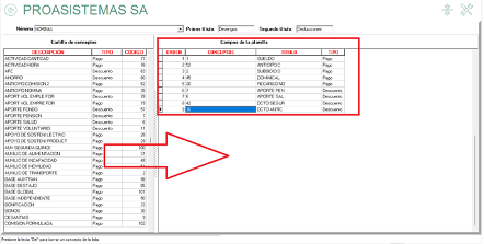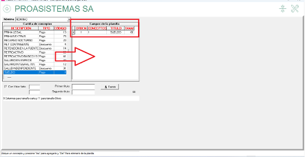 • Arrastrar hacia la derecha los conceptos que se quieren incluir en la consulta, primero todos los conceptos tipo pago y luego los conceptos tipo descuento según el orden en que se quieren visualizar.