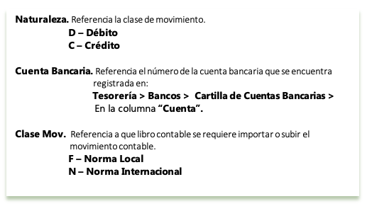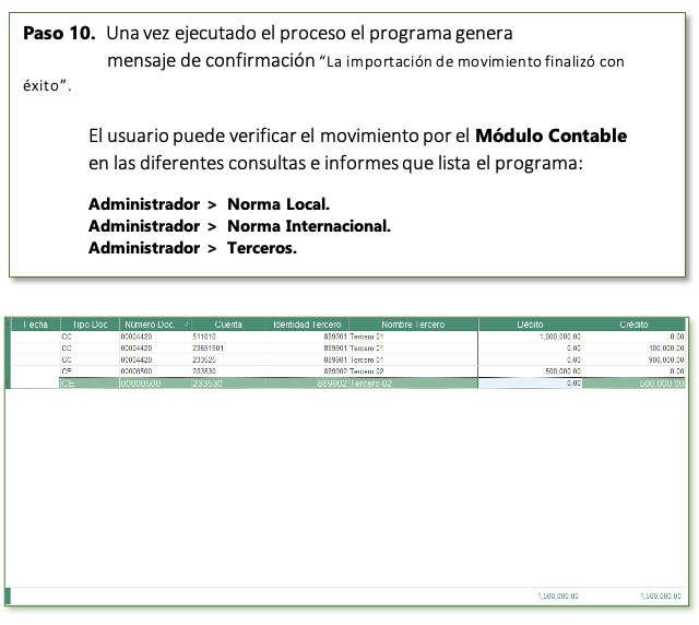 Corresponde al proceso de insertar o subir movimiento contable, este proceso se refleja en el Módulo Administrador en la información de norma local y norma internacional, de acuerdo a la forma de importación que realice el usuario.