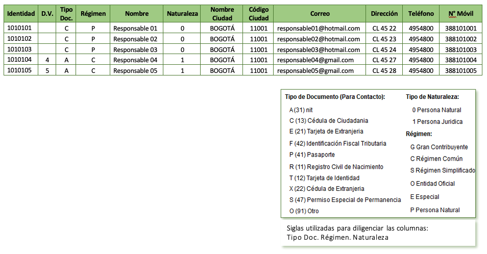 A continuación, ejemplo del archivo en Excel para importar Cartilla de Acudientes.