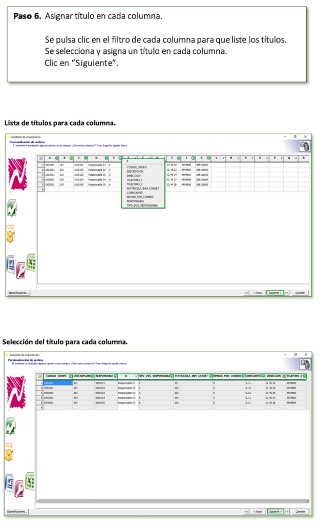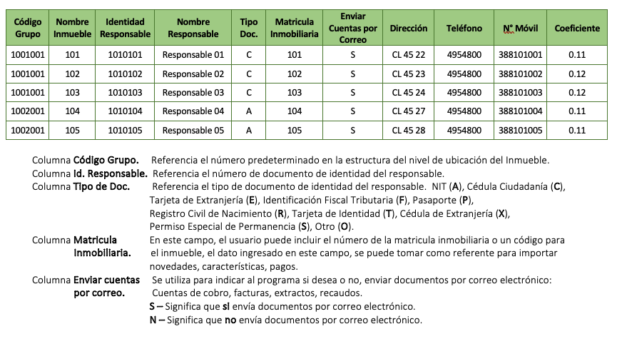 A continuación, ejemplo del archivo en Excel para importar Cartilla de Inmuebles.