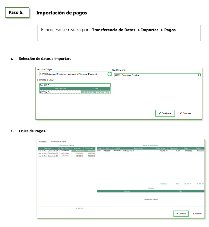 Corresponde al proceso de aplicar o causar pagos, a través de la importación de datos, dichos pagos se causan a cada estudiante en el documento de recaudo.