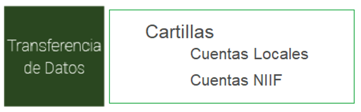 Paso 1: Ingresar al Módulo Transferencia de Datos  >  por la opción Exportar  >  Cartillas  >  Cuentas.