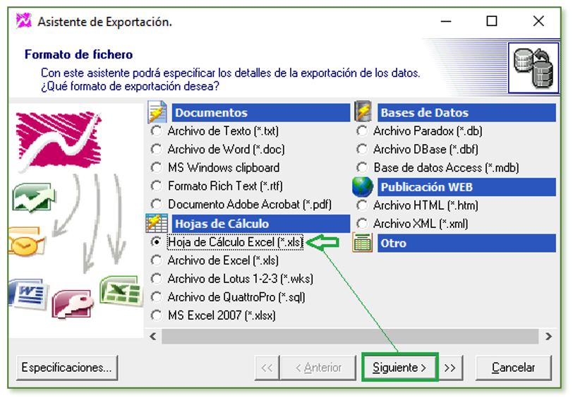 Paso 3: Se selecciona el formato del archivo a exportar: