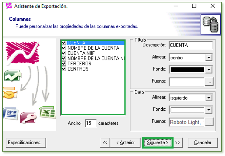 Paso 5: El programa genera pantalla con el resumen de columnas a exportar. Clic en “Siguiente”.