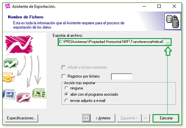 • Seleccionar la opción abrir con el programa asociado, para visualizar inmediatamente los datos exportados.