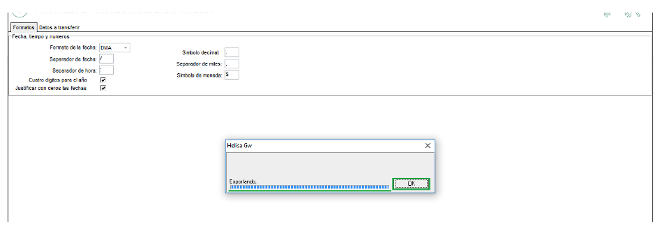 Paso 8: El programa genera mensaje para visualizar que los datos se están “Exportando” y solicita confirmación con el botón OK.