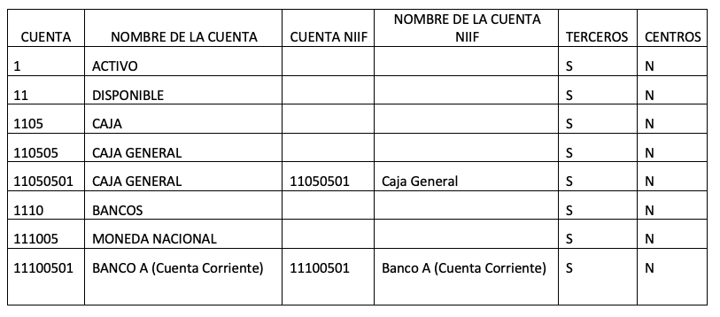 Paso 2: Al dar clic en: Cuentas Locales o Cuentas NIIF.