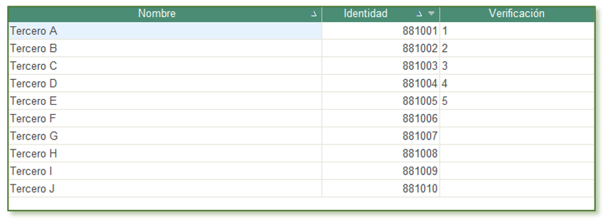 - Columna Identidad. Referencia el número de documento de identidad del tercero.