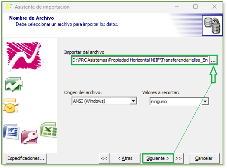 Paso 5: Seleccionar el archivo a importar, tomando la ruta en donde se encuentra guardado. Clic en “Siguiente”.