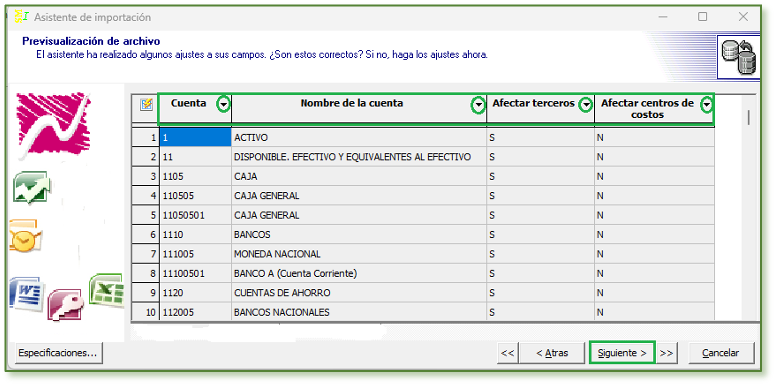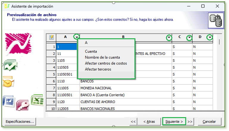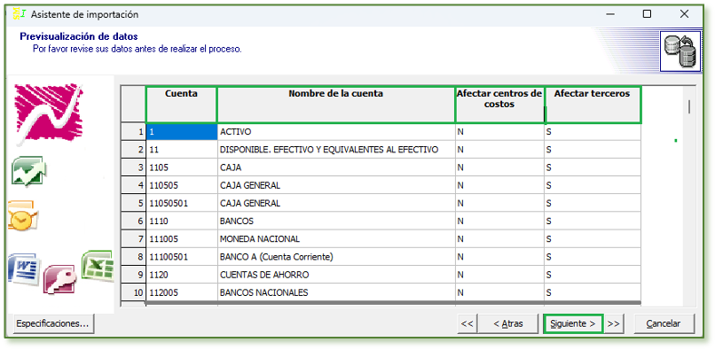Aplica para el proceso de subir el Plan de Cuentas Contables.