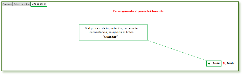- Si existe alguna inconsistencia en los datos a importar, estos reportan